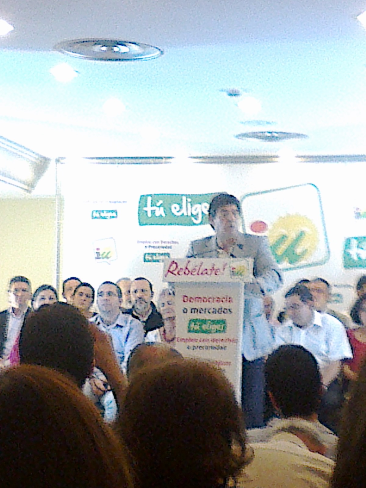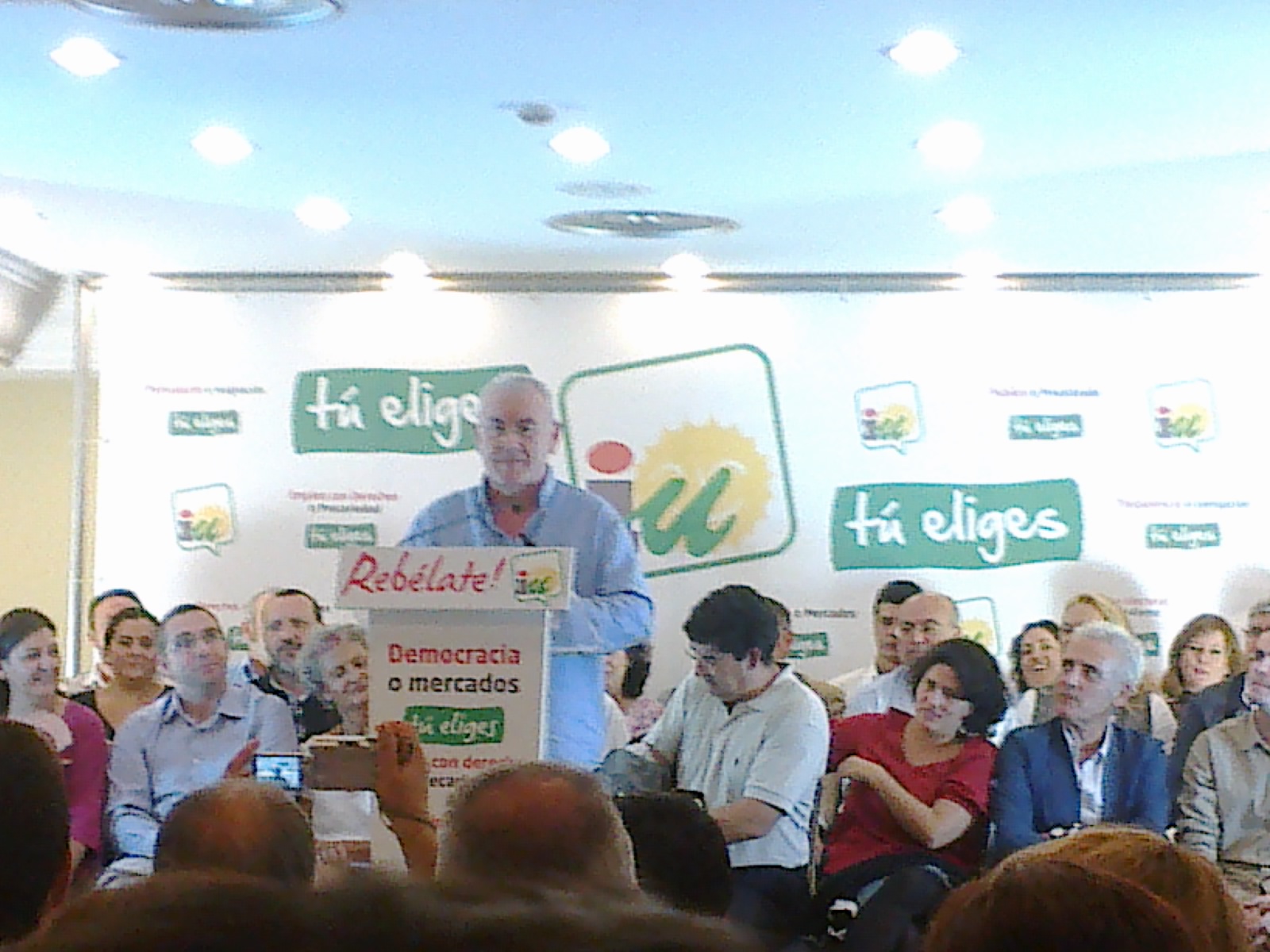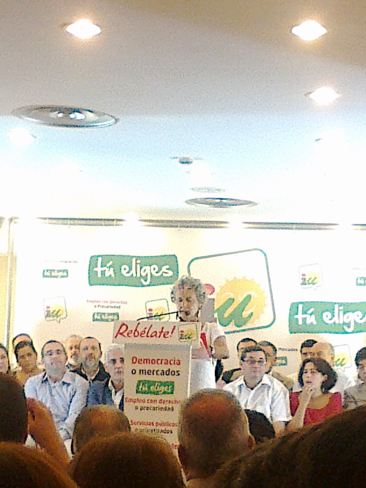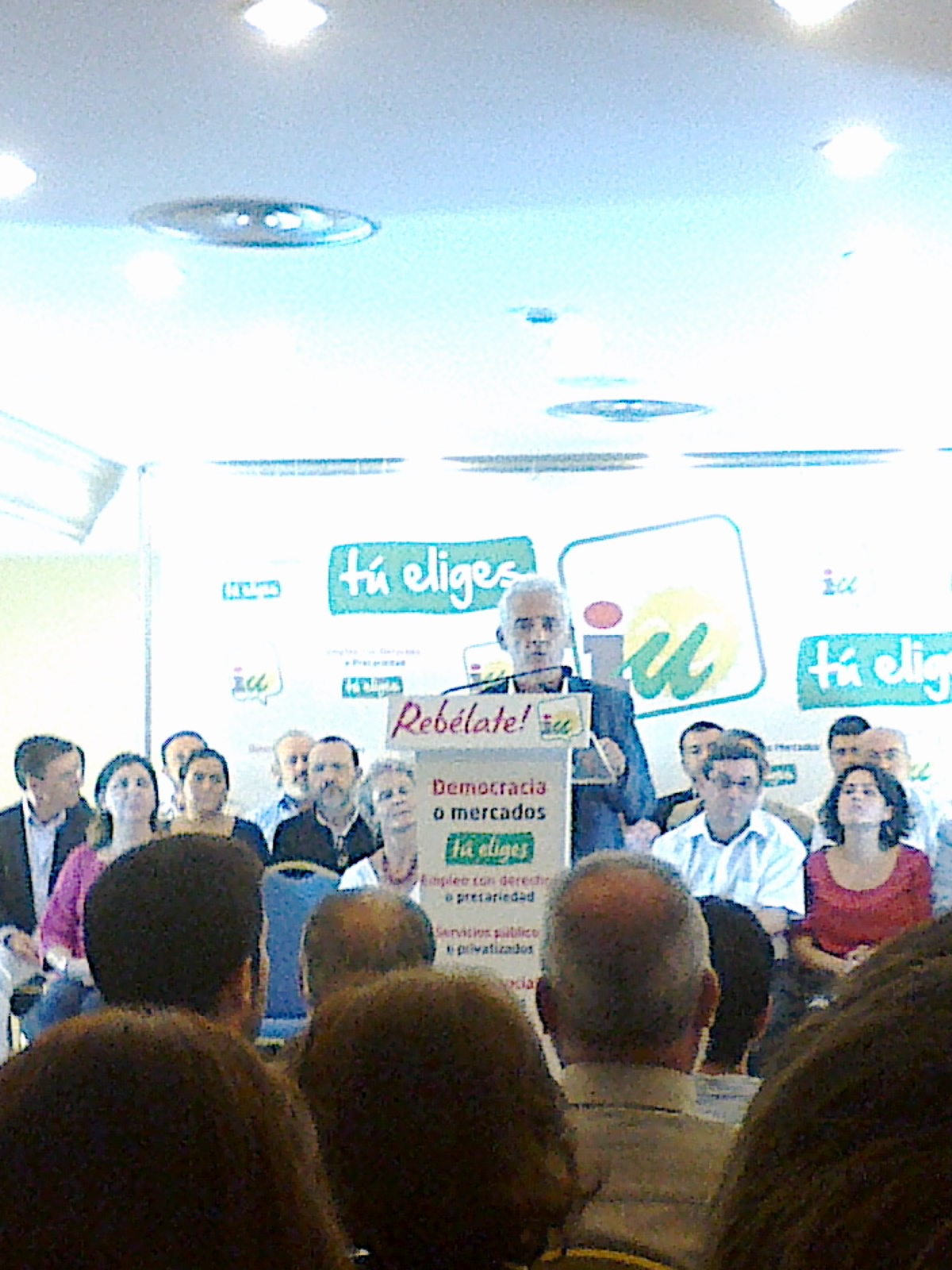En un tono muy elegante y sereno, mostró su ilusión particular en estas elecciones y en la Convocatoria Social que Izquierda Unida ha puesto en marcha, y que no terminó el fin de semana pasado, sino que continua y lo hará tras el 20N. Mostró su confianza en que nazca una nueva forma de hacer política, con más relevancia de los ciudadanos y donde los dirigentes políticos sepan dar un paso atrás. Animó a la ciudadanía a ilusionarse y transmitir el proyecto elaborado de manera colectiva.