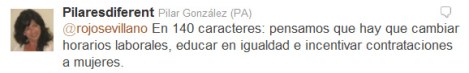 –       Fomentar la corresponsabilidad en las tareas de atención familiar de mujeres y hombres mediante el desarrollo de los servicios sociales, en especial de las escuelas infantiles y la atención a la dependencia, y en las empresas de horarios laborales y servicios que faciliten la conciliación. Impulsar la ampliación de los permisos parentales tendiendo a equiparar los de maternidad y paternidad… [pág 30]