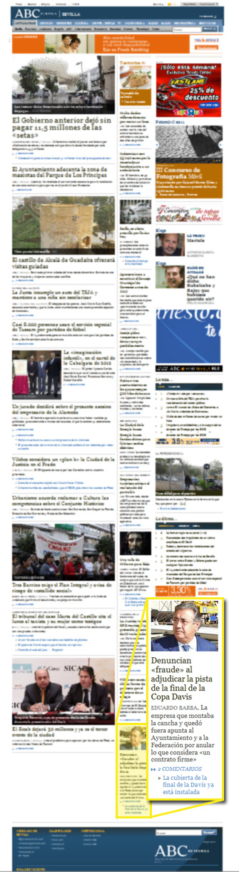 En la siguiente imagen se puede ver dónde coloca la web del ABC de Sevilla la noticia sobre la denuncia a Zoido por la adjudicación de la pista de la Copa Davis.