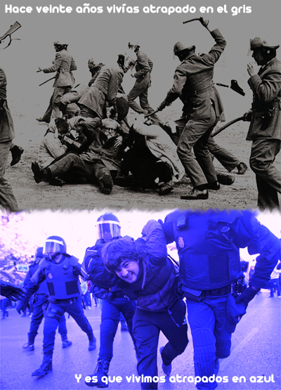 Ante las aberrantes imágenes de cómo se las gasta la policia en los últimos meses… ahora es en Valencia, hace poco fue en Barcelona… esta misma mañana ha sido en la sede central de RTVA. Ante estas imágenes sólo puedo añadir estas estrofas de cantautor.