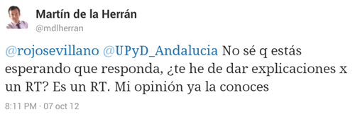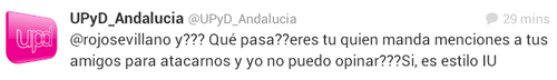 Mención especial debe tener la respuesta de la cuenta oficial de UPyD Andalucía (@UPyD_Andalucia):