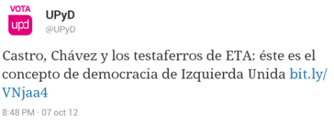 ¿Y este tweet de la cuenta nacional (@UPyD) es también para explicar «sus políticas» o simplemente para fomentar el odio hacia Izquierda Unida?