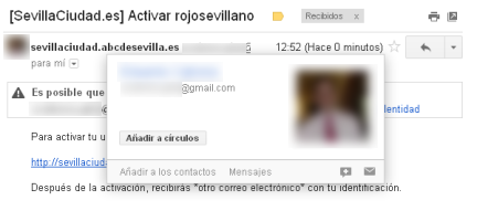 Te registras con tu nombre de usuario, tu correo electrónico y te envían un email de confirmación… ¡desde la cuenta personal de Gmail de un programador de ABC!