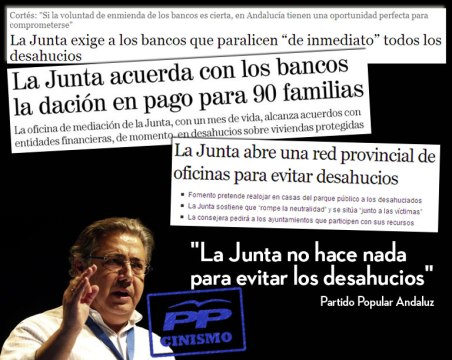 Y lo peor, el señor Zoido tiene la poca vergüenza de instar a la Junta a tomar medidas a favor de los desahuciados y de criticar que «la Junta no hace nada para paralizar los desahucios».