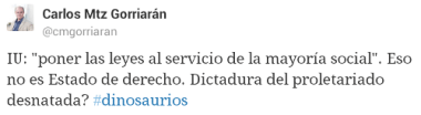 Esta mañana el diputado magenta Carlos Martínez Gorriarán hablaba en Twitter de la «dictadura del proletariado». Desde este blog comprendemos que ellos, que ni son de izquierda ni de derechas pero que son radicalmente anticomunistas y anti todo lo que huela un poco a marxismo, estén en contra de la «dictadura del proletariado».