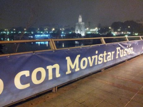 En las paradas del autobús, podrán ver publicidad de Movistar. Si entran por el Prado, una gran columna publicitaria de Movistar os dará la bienvenida. Si cruzan por el puente de San Telmo, podrán disfrutar de las nuevas barandillas… todas cubiertas con publicidad de Movistar. Si va a coger ese diabólico invento de Torrijos, el Sevici, también podrán ver publicidad de Movistar. Si se acerca a comprar el periódico, el ABC por supuesto, también verá un cartel de movistar.