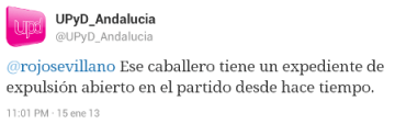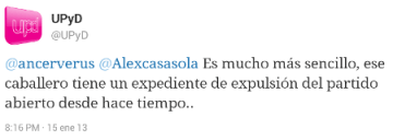 Y ante esto, ¿qué hace UPyD? Lanzar un mensaje a todo el que pregunta, el mismo mensaje… un «copia y pega»: «Ese caballero tiene un expediente de expulsión abierto en el partido desde hace tiempo»