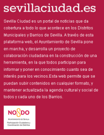 La web sigue manteniendo el dominio de la empresa (www.sevillaciudad.ABCDESEVILLA.es) y han añadido a la cabecera el «por ABCdesevilla.es» debajo del título) pero abajo del todo, donde antes aparecía el logo del periódico de la grapa, ahora aparece el logo del Ayuntamiento.