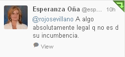 Llevo unos días haciendo, como dicen por ahí, «trolleo educado». Lo que en cristiano es «ser una mosca cojonera». Le ha tocado a Oña, a Esperanza Oña. Alcaldesa de Fuengirola (Málaga), Vicepresidenta segunda del Parlamento Andaluz y exportavoz del PP-A.