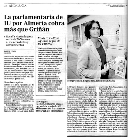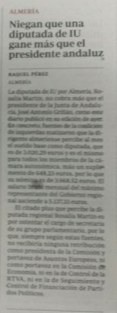 Y llega el clímax, publican una pequella rectificación bajo el titular «La diputada de IU por Almería sólo cobra un suplemento del Parlamento» con el subtitular «La coalición aclara que no gana más que Griñán, ya que su único plus es 648 euros como secretaria de su grupo».