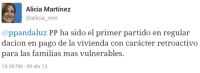La diputada andaluza afirma que el PP ha sido el primero «en regular la dación en pago de la vivienda con carácter retroactivo» [¡¿¡!?!]