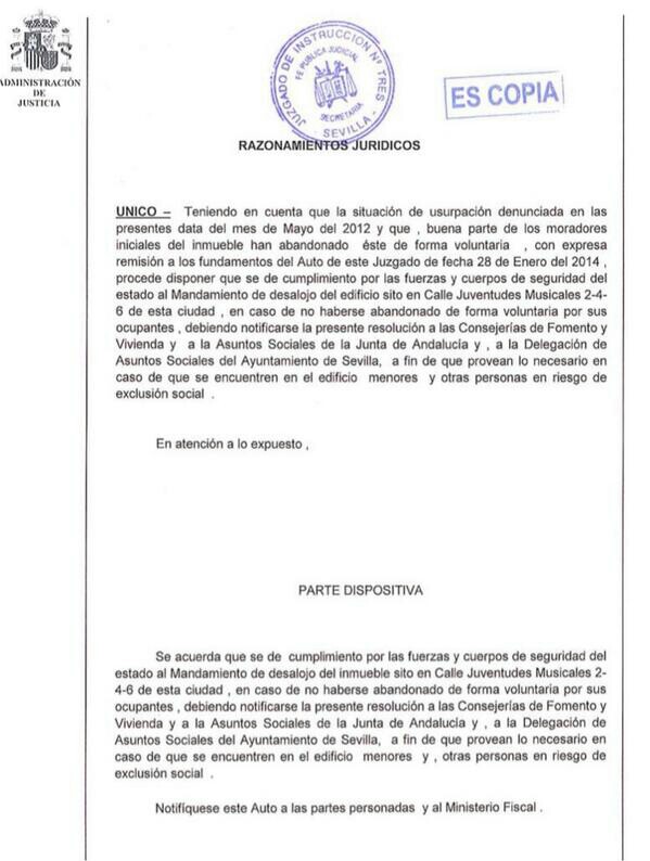 El gobierno de Zoido aprobó el 8 de febrero de 2013 «el baremo para la adjudicación de viviendas a familias en proceso de intervención social», de esta lista quedan excepcionados los casos de realojo… como es el caso de la Corrala Utopía.